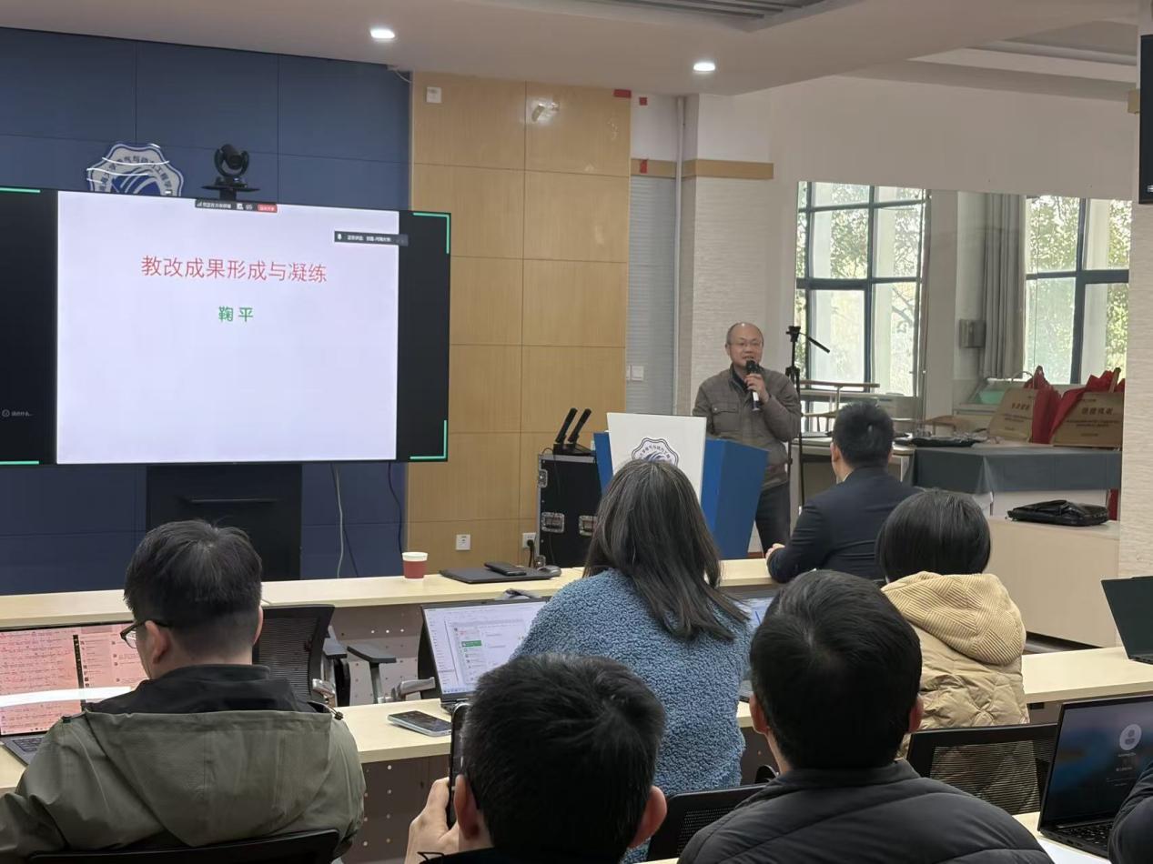 会议邀请鞠平教授对学院教学工作给予指导,强调成果凝练要立足真问题、真改革、真成效,突出学科特色与行业需求,强化理念与模式创新。学院要加强顶层设计,整合资源,突出成果的系统性与示范性,将教学实践转化为可推广经验,以成果培育提升育人质量,推动学校教育教学高质量发展。