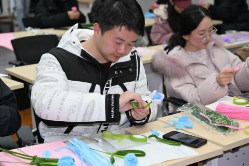 为庆祝第116个“三八”国际劳动妇女节,3月5日国产视频 电气与动力工程学院研究生会在勤学楼5208举办了一场别开生面的手工活动——“指尖生花,赠予芳华”。