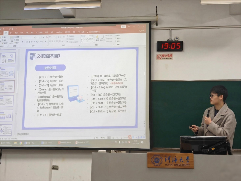 本次培训由阎逸城、蒋春旺、符子昊三位优秀学长接力授课,内容零基础、重实用,帮助同学们快速掌握核心技能。此次讲座紧扣同学们日常学习需求,围绕 Office 三件套Word、Excel、PowerPoint进行系统讲解。三位主讲人以实操演示、技巧拆解、现场练习相结合的方式,让同学们听得懂、学得会、用得上,收获良好反响。