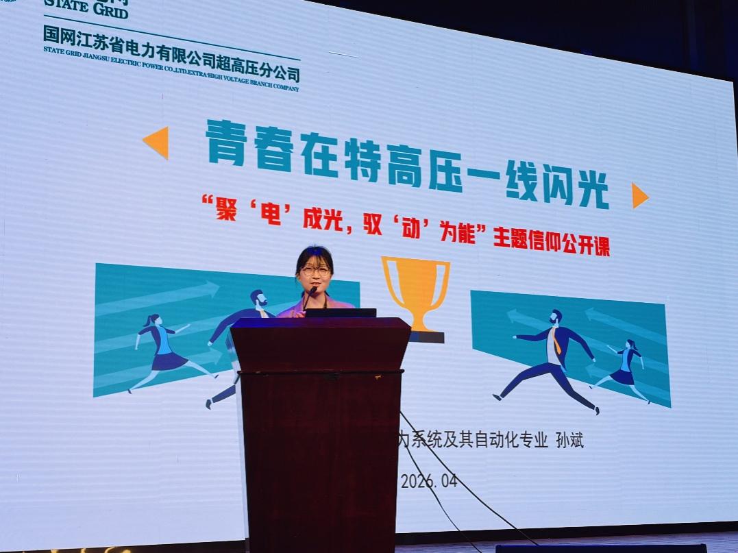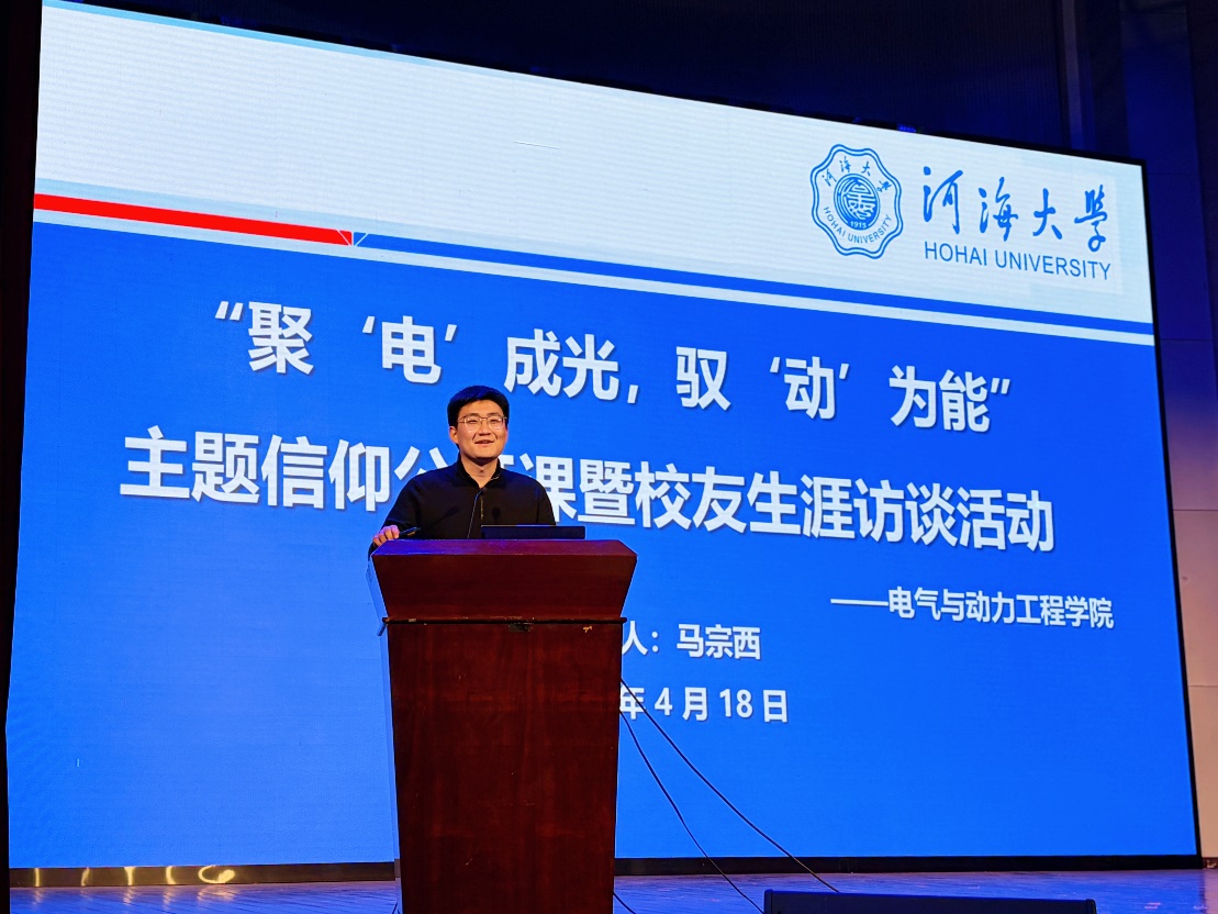 4月18日,国产视频 电气与动力工程学院在江宁校区博学楼报告厅举行了“能源脉搏中的思政课:聚‘电’成光, 驭‘动’为能”校友生涯访谈暨主题信仰公开课。活动邀请了国网江苏超高压公司特高压盱眙(淮安)站运维值班员孙斌、中广核江苏新能源有限公司产业发展部市场开发主管马宗西、长江三峡集团江苏能源投资有限公司集控运维中心主办黄雨薇、常州博瑞电力自动化设备有限公司人力资源专员岳鹏翔四位校友,学院党委副书记张炜、辅导员雷镕甄、于涵以及学院全体2025级本科生参加活动。