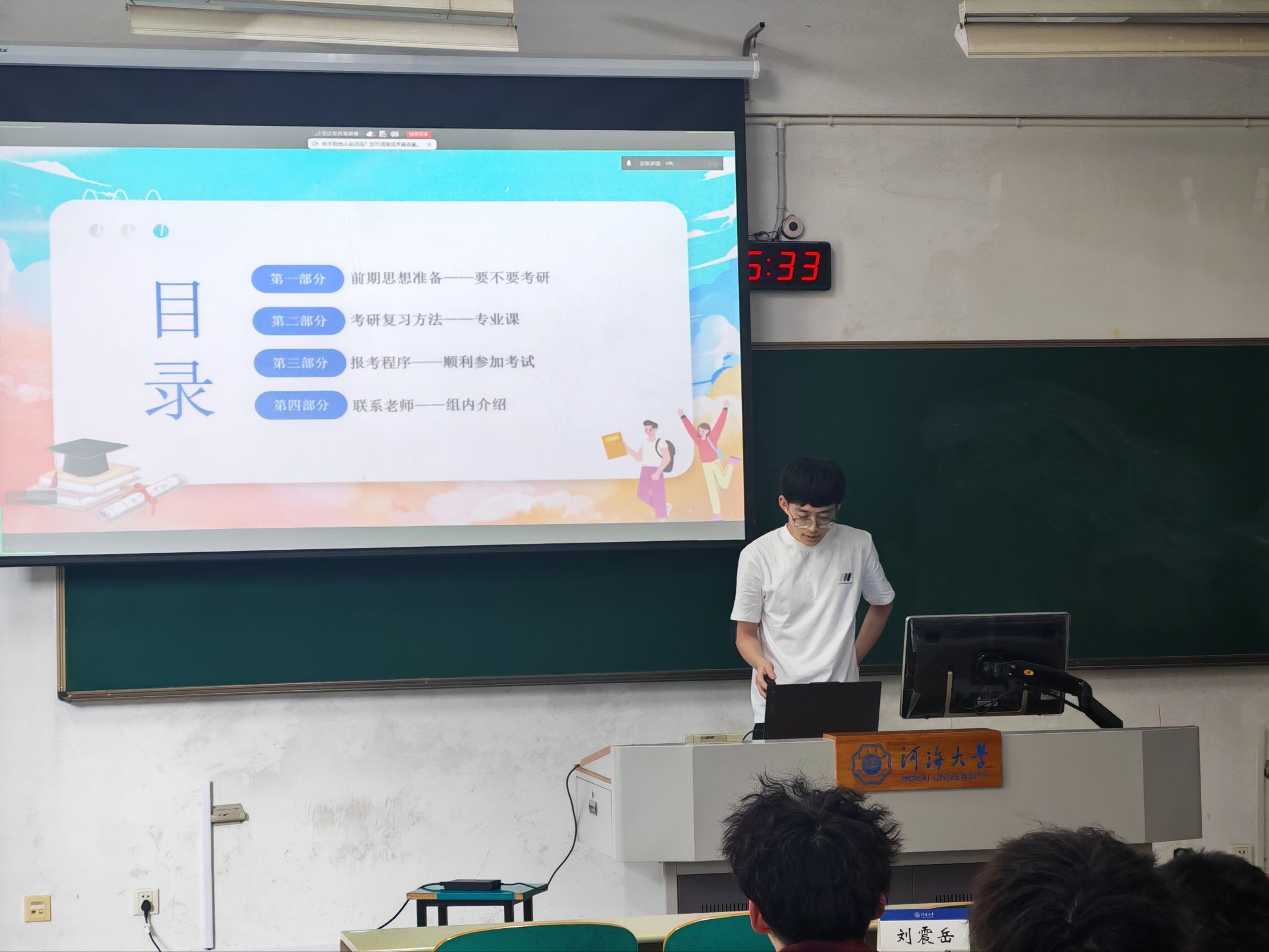 刘震岳同学则聚焦考研专业课与报考程序,带来极具实操性的建议。他提醒同学们“先确定院校,为目标努力”,避免盲目报考,同时关注官网动态以防专业课改考。在专业课备考上,他主张分阶段推进:前期梳理框架、暑期强化做题、秋季真题训练、考前全真模拟。他还详细介绍了报考程序中的关键节点,如预报名、正式报名、线上确认、准考证打印等,并鼓励有意报考国产视频 的同学提前联系导师,做到“少鸽子、讲诚信”。