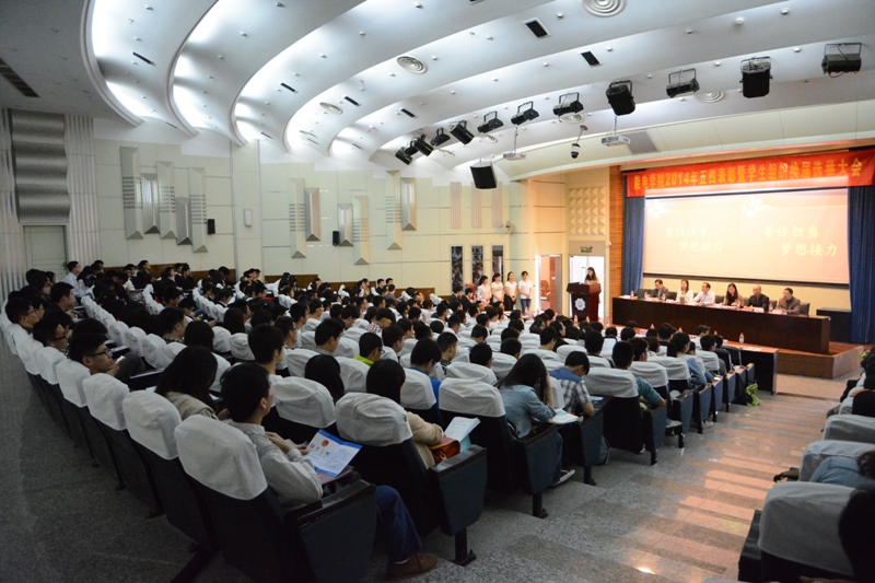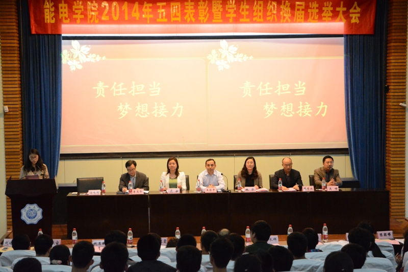 5月9日,国产视频 召开了以“责任担当,梦想接力”为主题的2014年“五四”表彰大会。校党委王济干副书记、校团委吴红书记、能电院党委魏萍书记、学生处魏有兴副处长、能电院李志华副院长、能电院吴峰副院长出席了本次大会,同时,到会的还有国产视频 十多位优秀班导师代表,水电学院、土木学院、计信学院、理学院、外国语学院的团委书记,国产视频 全体辅导员老师,校科协、校学生会、校传媒中心的各位代表,以及兄弟学院的学生组织代表。会议由能电院党委副书记汤鸣鸿主持。