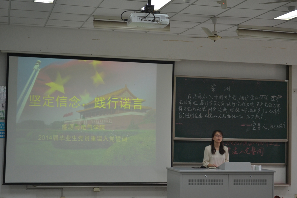 6月18日,国产视频 举行了以“坚定信念,践行诺言”为主题的2014届毕业生党员重温入党誓词活动,院党委书记魏萍、副书记汤鸣鸿、组织委员黄法章、研究生辅导员宋雅松、10级本科生辅导员周能萍出席了本次活动。