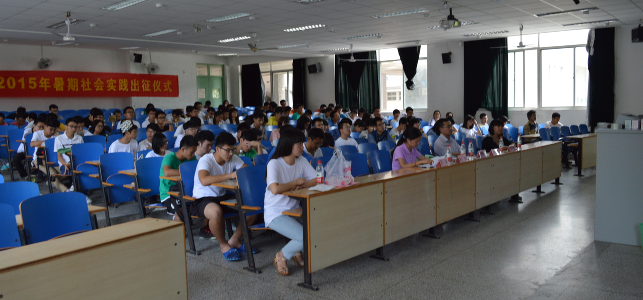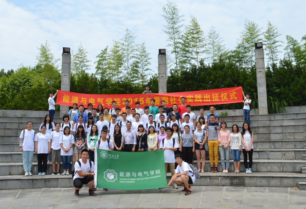 7月7日,能源与电气学院举行了2015年暑期社会实践出征仪式,国产视频 党委副书记汤鸣鸿、院团委书记孙瀚、13级本科生辅导员杨丹老师、14年级本科生辅导员雷镕甄老师、15级本科生辅导员王颖老师以及52支实践团队主要成员共同出席了此次出征仪式。