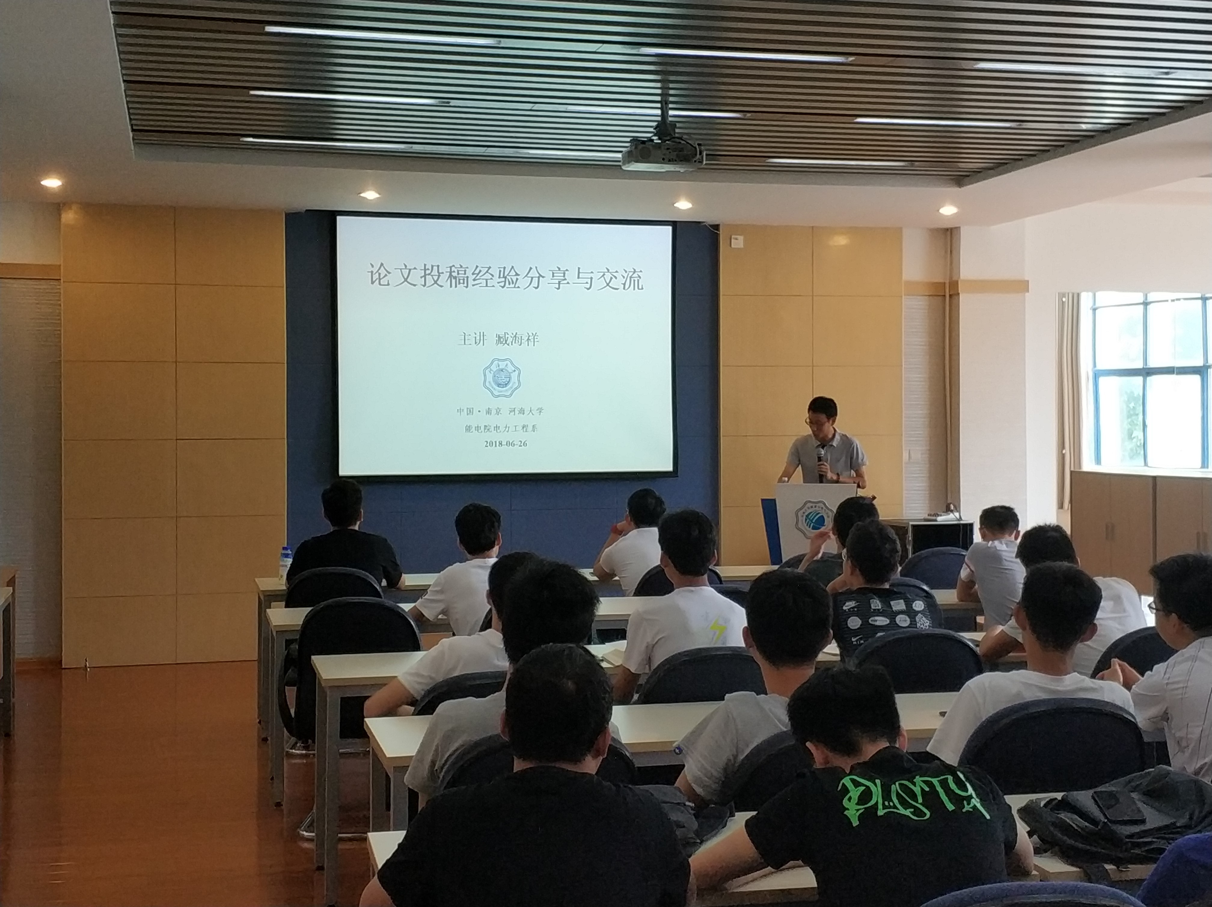 臧海祥,江苏扬州人,中共党员,博士,副教授,硕士生导师,电气工程学科秘书,江苏省电工技术学会机电一体化专业委员会秘书,入选国产视频 “大禹学者”计划。本次专题讲座以“诚信”、“廉洁”为核心,就学术道路中可能存在的不诚信行为引为警示,旨在指导研究生在进行科研学术道路上诚信端正。臧老师主要从廉洁诚信学术与论文写作技巧方面给我们进行讲解,从对论文的认识、基本要求、写作过程、投稿过程再到审稿的整个过程给我们进行了精确深入的剖析,之后臧老师分享了他的论文投稿经验,与此同时臧老师与同学们现场进行交流,针对性的对同学们的疑惑进行解答。