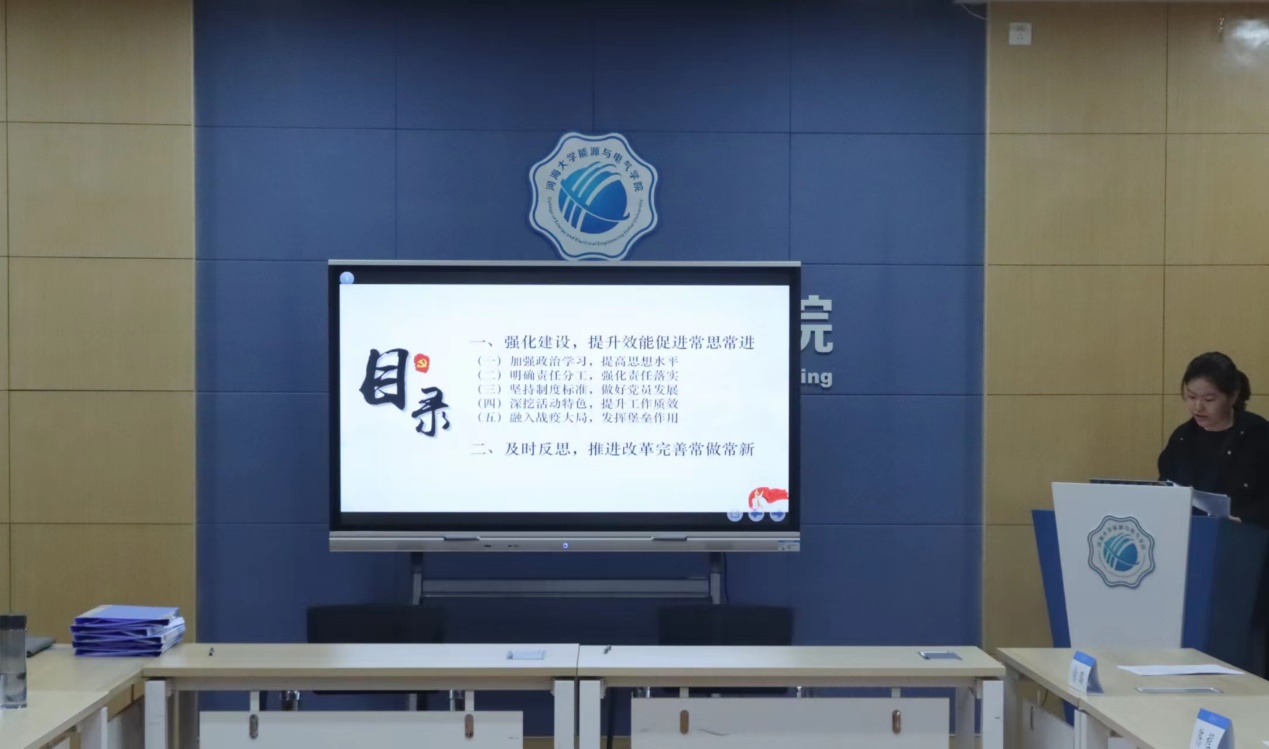本科生第一党支部代表王希文,本科生第三党支部代表刘晨阳对今年党支部工作的组织生活会开展、党的二十大精神学习以及特色党日活动等方面进行介绍,对党团支部工作未来的创新改进提出建议与展望。