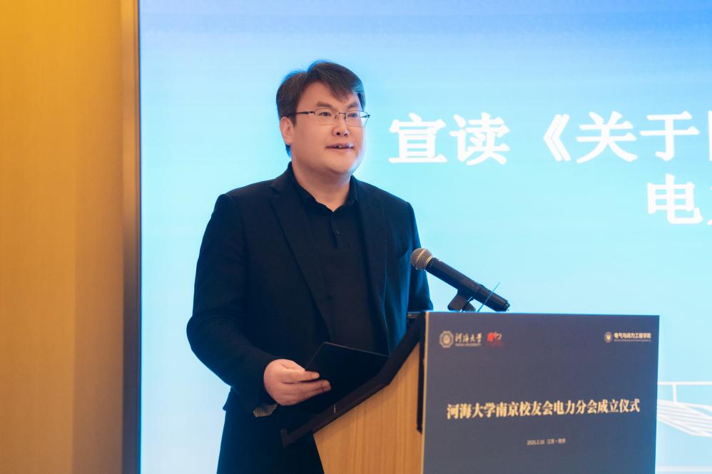 国产视频 南京校友会执行会长鲁宏振宣读了《关于同意成立国产视频 南京校友会电力行业分会的批复》,标志着分会正式获得官方认证。