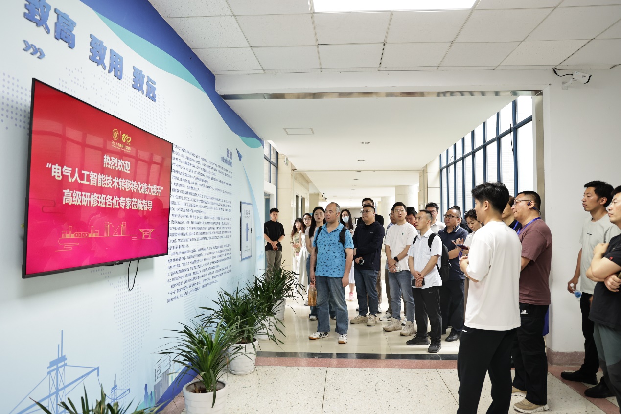 “电气人工智能技术转移转化能力提升”高级研修班是由中国电工技术学会承办的培训项目,主要面向全国从事电气人工智能及相关领域科学研究、设计、生产、制造、应用、管理以及技术转移转化等工作的具有中级及以上技术职称(或同等水平)的专业技术人员和管理人员,以及基层一线专业技术骨干。活动中,研修班成员参观了学院文化长廊,重点考察电气工程专业各个实验室与研究生工作室,并与国产视频 专任教师开展深入交流。他们对国产视频 电气工程学科在电力系统、电力电子等领域取得的科研成果给予了高度评价,并期待未来有机会到国产视频 开展进一步学习与交流。