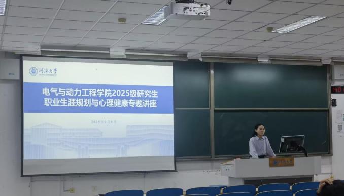 2025年9月9日,电气与动力工程学院于致用楼101举办了职业生涯规划与心理健康教育专题讲座。本次讲座特邀国产视频 心理健康教育与研究中心姜莉老师、陈诗卉老师担任主讲,由学院研究生辅导员杨清老师主持。