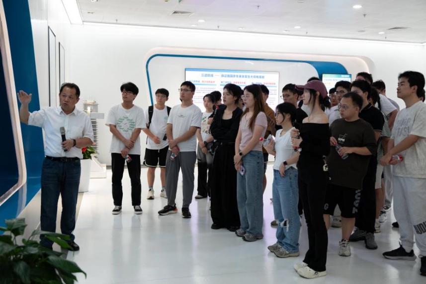 随后,师生们参观了研究中心与国家重点实验室。实验室研究人员为大家系统介绍了风电、光伏等新能源并网的研究进展与成果,重点展示了海上风资源开发、风机结构设计、并网稳定性分析等方向的突破性成就,并通过动态仿真平台进行现场演示。先进的科研设施与真实的工程案例给同学们留下深刻印象,对专业理论实际应用的理解更加深入。