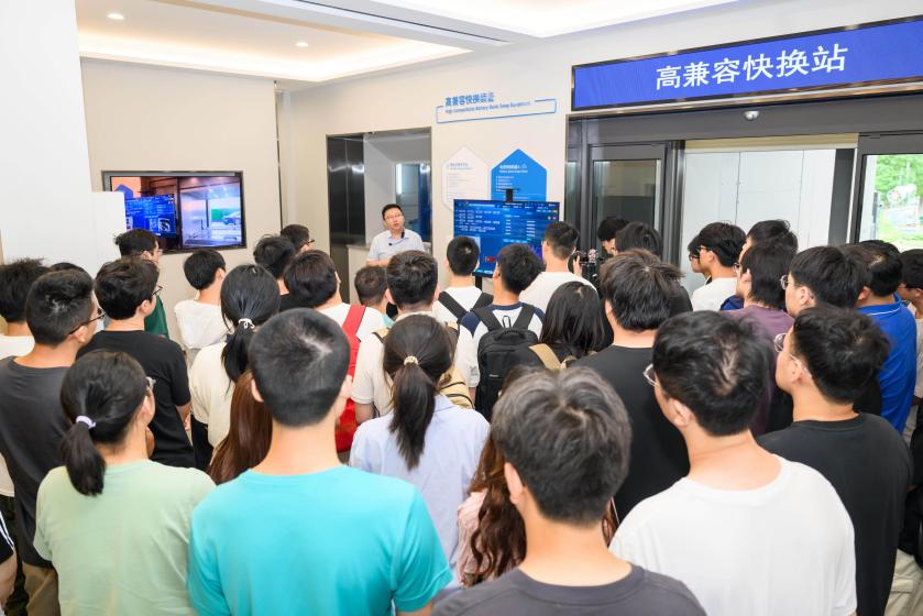 师生来到智能车网互动试验平台。工程师详细讲解了电动汽车智能并网技术的最新进展与工程应用,涵盖V2G(车辆到电网)双向互动、车辆快速换电、充电设施智能化管理等热点内容,让同学们近距离感受到新能源汽车与电网融合的前沿动态。同学们结合专业背景,围绕技术细节与应用前景向工程师们踊跃提问。例如,针对同学们问到的“V2G技术在实际推广中面临的主要挑战与成本问题”,工程师从标准制定、基础设施建设费用及用户接受度等角度一一回应,同学们在问答中深刻领悟了技术从理论到落地所面临的种种机遇与挑战。
